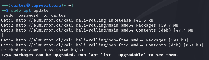 Nota: Podemos actualizar Kali Linux con un solo comando en lugar de ejecutar cada comando por separado: apt update && apt upgrade.