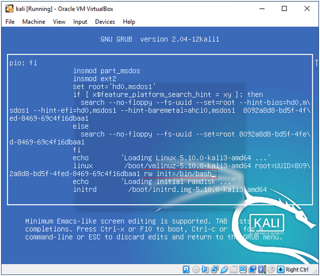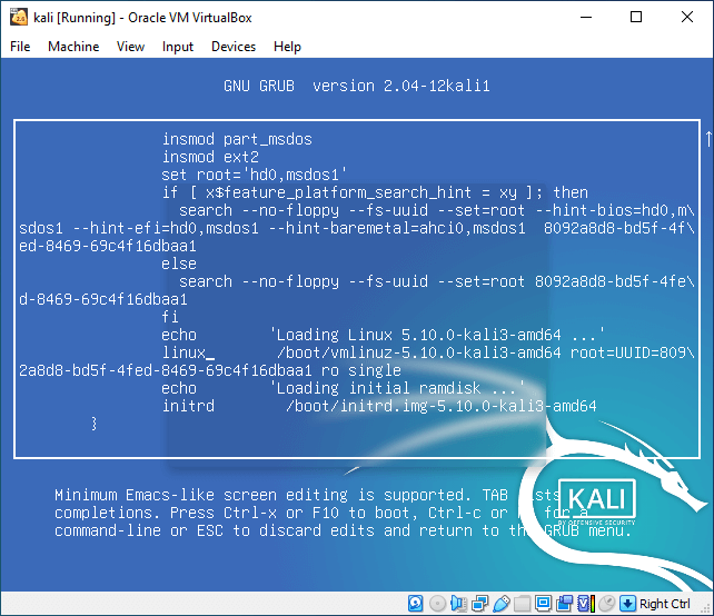 Después de seleccionar la segunda opción, debe presionar la “e” para editar la entrada de arranque como se muestra a continuación: