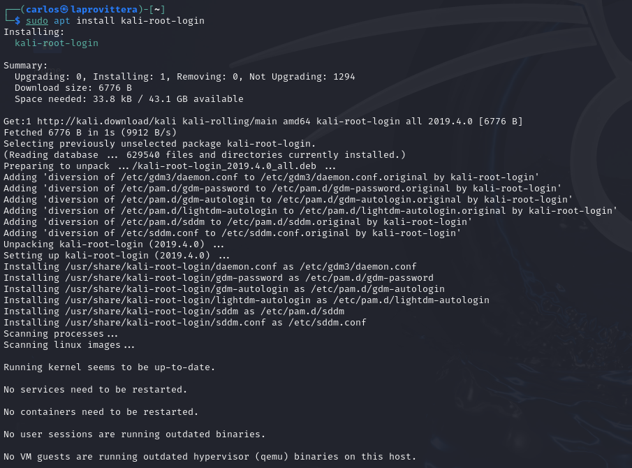 1. En primer lugar, abra la terminal, escriba y ejecute el siguiente comando para instalar kali-root-login