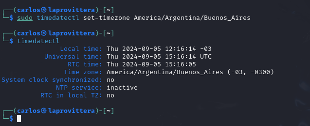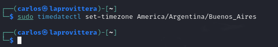 sudo timedatectl set-timezone America/Argentina/Buenos_Aires