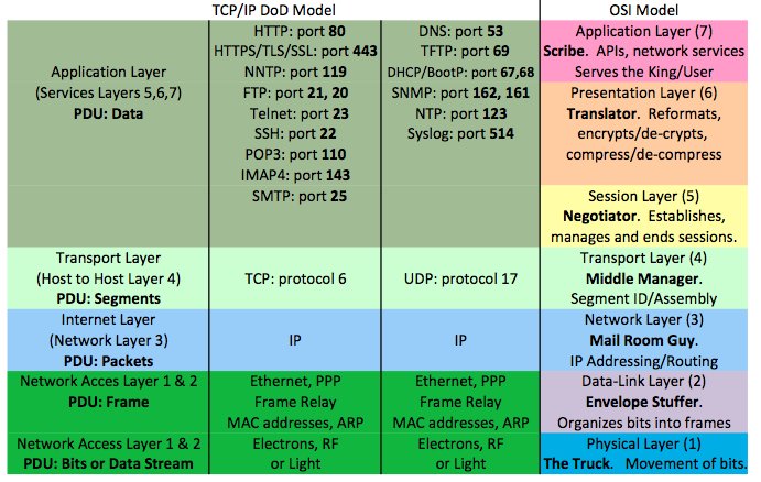 Sin embargo, la capa de acceso a la red y la capa de aplicaciones del modelo TCP/IP se dividen a su vez en el modelo OSI para describir funciones discretas que deben realizarse en estas capas.