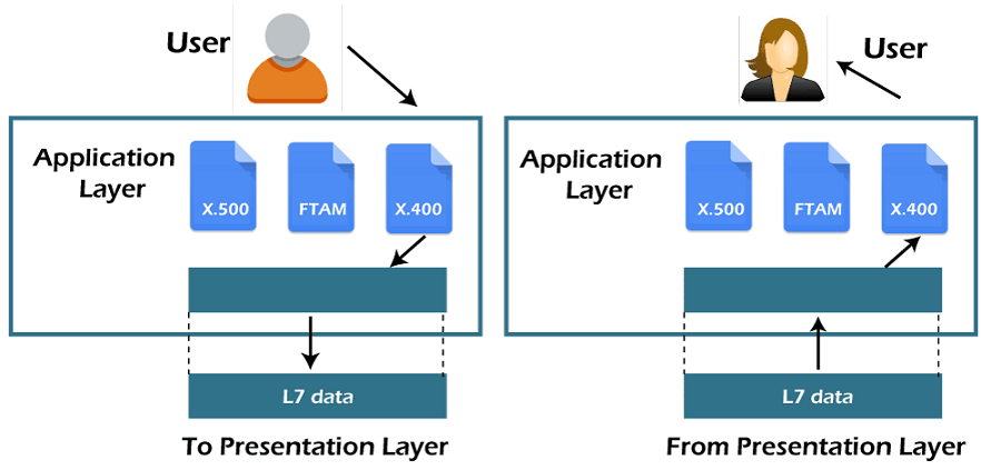 - Transferencia, acceso y gestión de archivos (FTAM): una capa de aplicación permite a un usuario acceder a los archivos en una computadora remota, recuperarlos de una computadora y administrarlos en una computadora remota. Facilita principalmente la transferencia de archivos entre dos dispositivos de red mediante FTP (Protocolo de transferencia de archivos).
