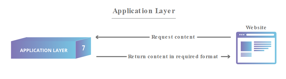 - Una capa de aplicación sirve como ventana para que los usuarios y los procesos de aplicación accedan al servicio de red.