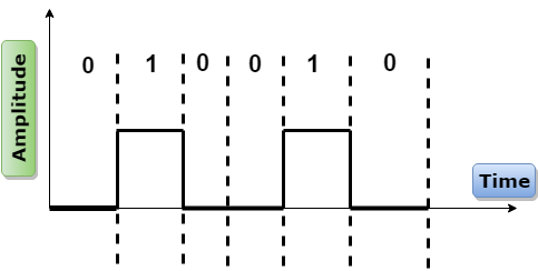 NRZ-L: En la codificación NRZ-L, el nivel de la señal depende del tipo de bit que representa. Si un bit es 0 o 1, entonces sus voltajes serán positivos y negativos respectivamente. Por lo tanto, podemos decir que el nivel de la señal depende del estado del bit.