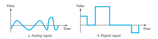 Señales analógicas: varían de forma continua y similar a un dato analógico. En comunicaciones, se utilizan señales analógicas periódicas, lo que significa que se completa un patrón determinado en un período de tiempo.