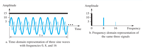 En telecomunicaciones se utilizan señales compuestas, señales que ya no son una simple onda senoidal, sino la sumatoria de muchas de ellas que utilizan diferentes frecuencias.
