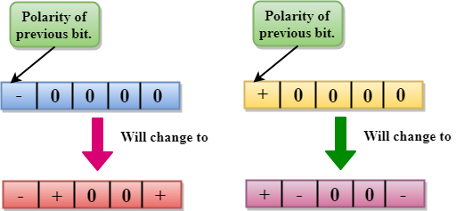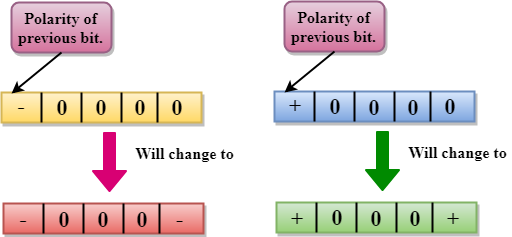 - Para lograr la sincronización, debe haber un cambio de señal para cada bit. Sin embargo, para cambiar con cada bit, necesitamos tener tres valores: positivo, negativo y cero.