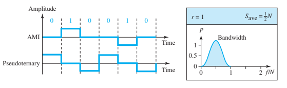 - Al utilizar dos niveles de voltaje, se reduce el nivel de voltaje promedio y se alivia el problema del componente de CC del esquema de codificación unipolar.