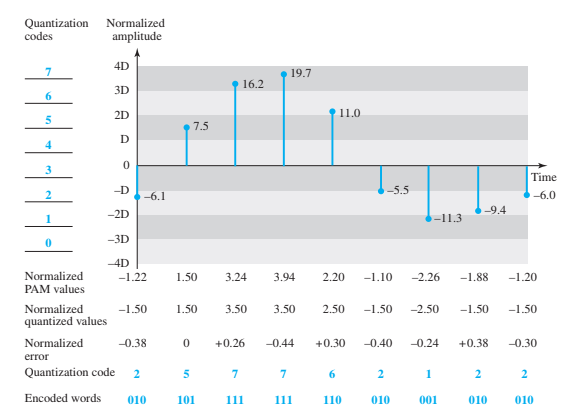 La cantidad de bits se puede determinar mediante la siguiente fórmula: Número de bits por nivel = Log2 L; siendo L la cantidad de niveles utilizado.